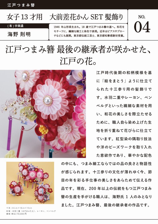 4 | 江戸つまみ簪 | (有)宇美濃 | 海野 則明 | 女子13才用 大前差花かんSET髪飾り |