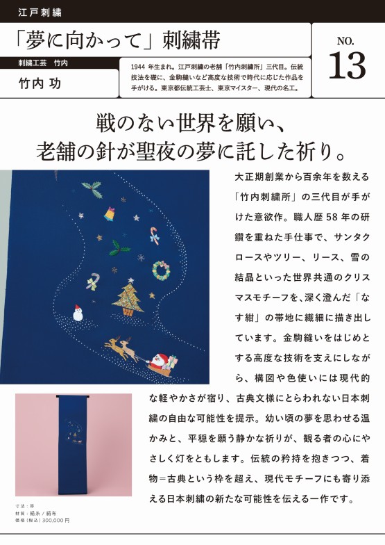 13 | 江戸刺繍 | 刺繍工芸 竹内 | 竹内 功 | 「夢に向かって」刺繍帯 |