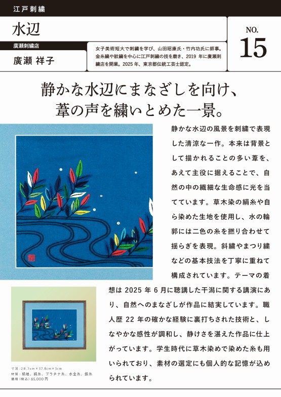 15 | 江戸刺繍 | 廣瀬刺繍店 | 廣瀬 祥子 | 水辺 |