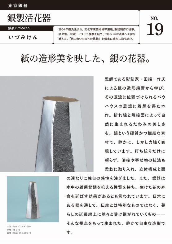 19 | 東京銀器 | 銀泉いづみけん | いづみけん | 銀製活花器 |