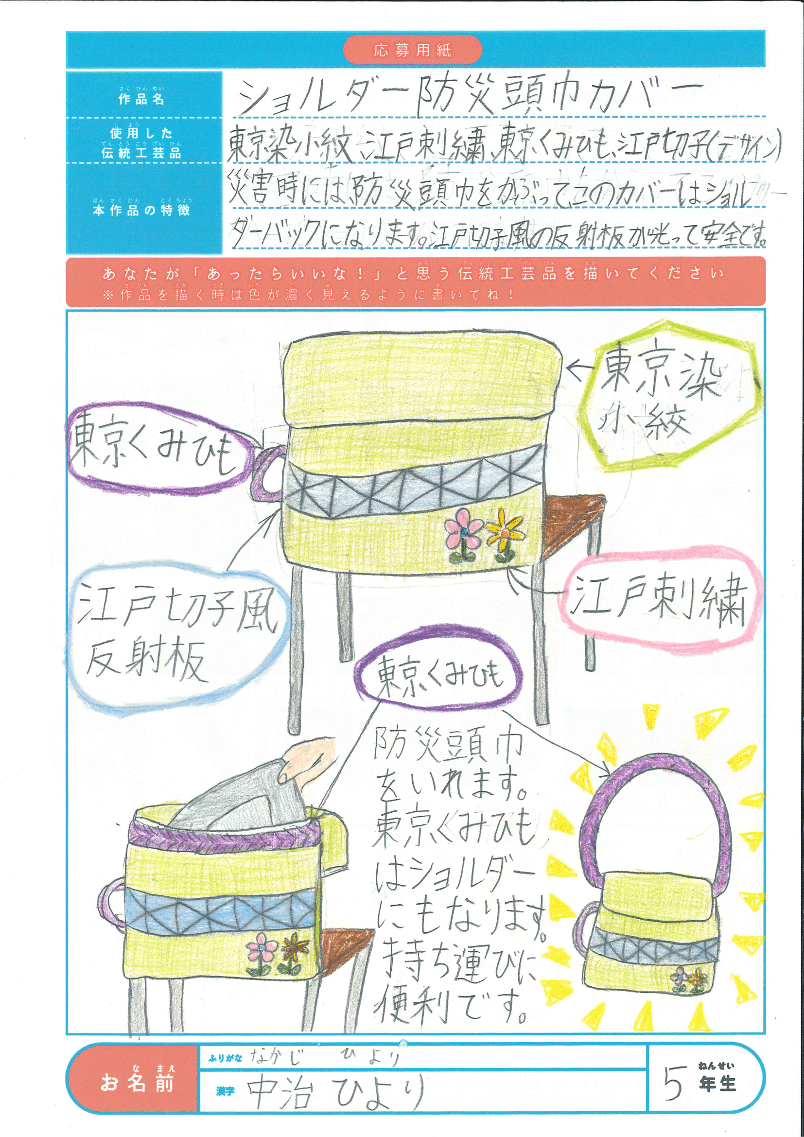 中治ひよりさん | 5 | ショルダー防災頭巾カバー |