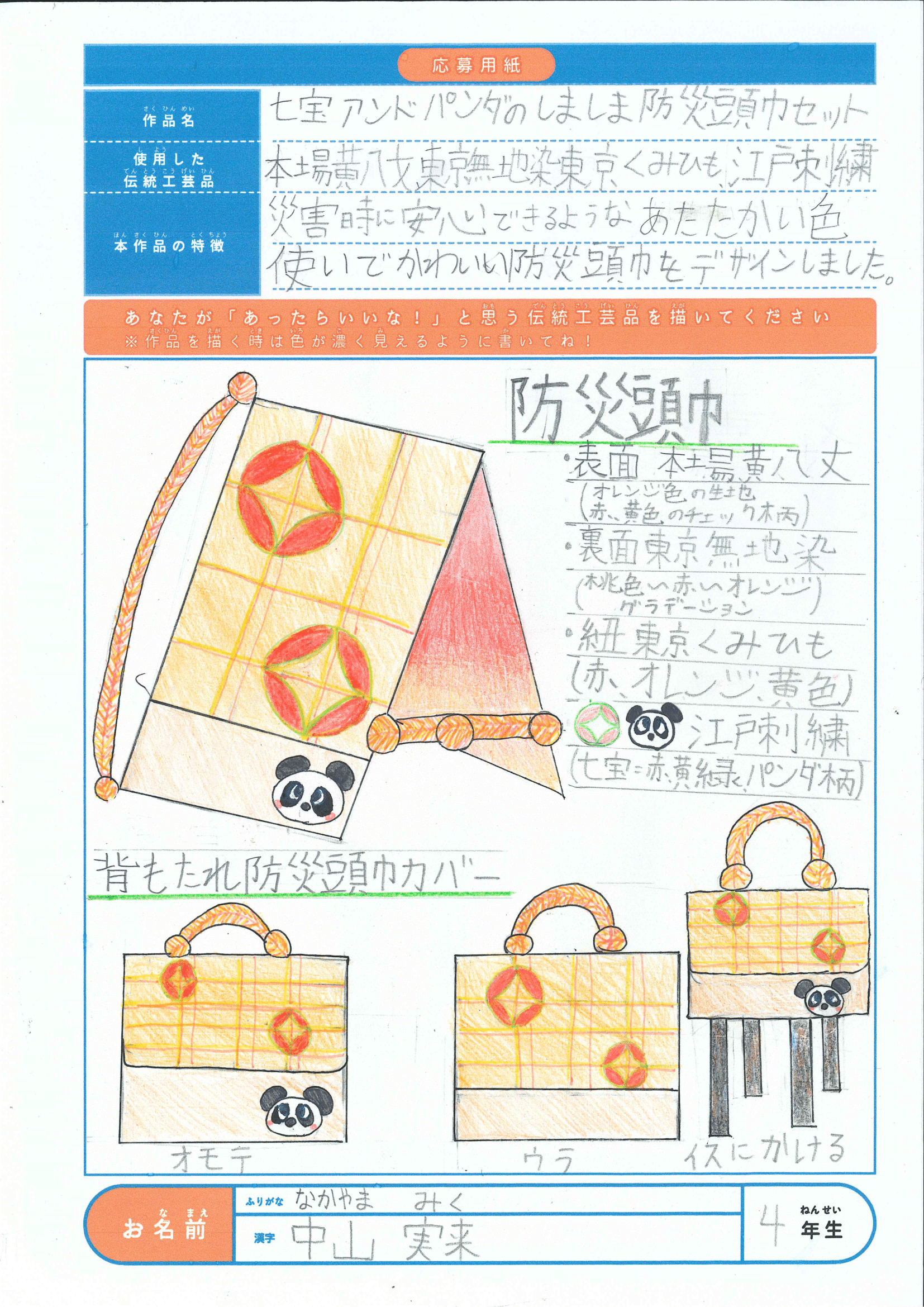 中山実来さん | 4 | 七宝アンドパンダのしましま防災頭巾セット |