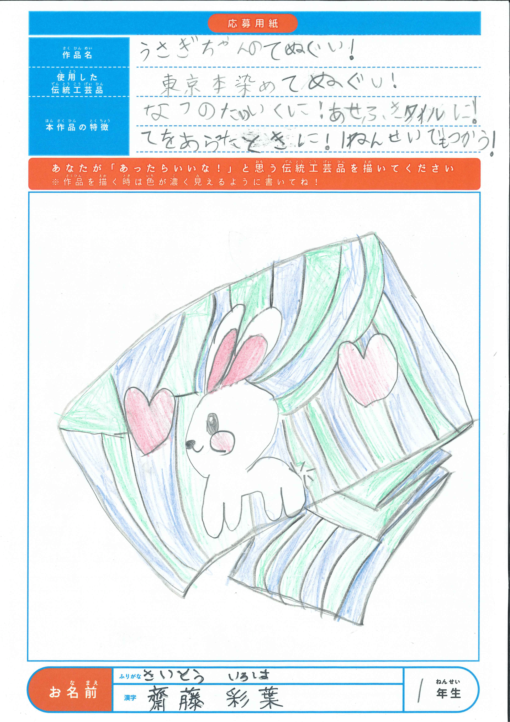 齋藤彩葉さん | 1 | うさぎちゃんのてぬぐい! |